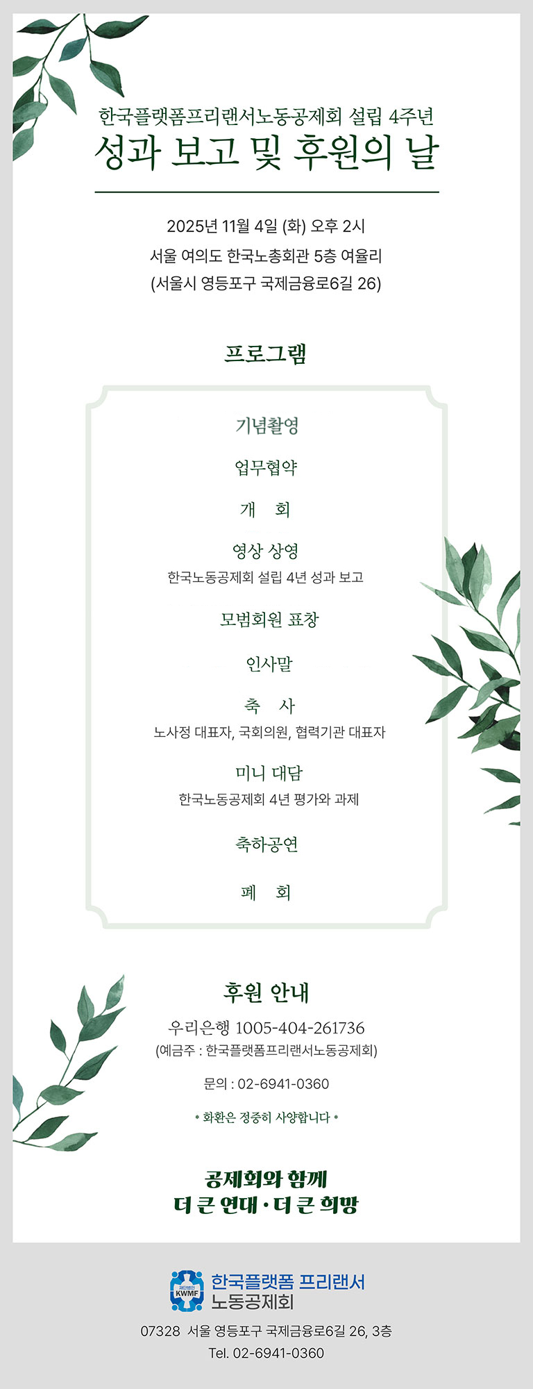 이 자리에 함께하시어 한국노동공제회의 다음 걸음을 밝혀 주시기 바랍니다.