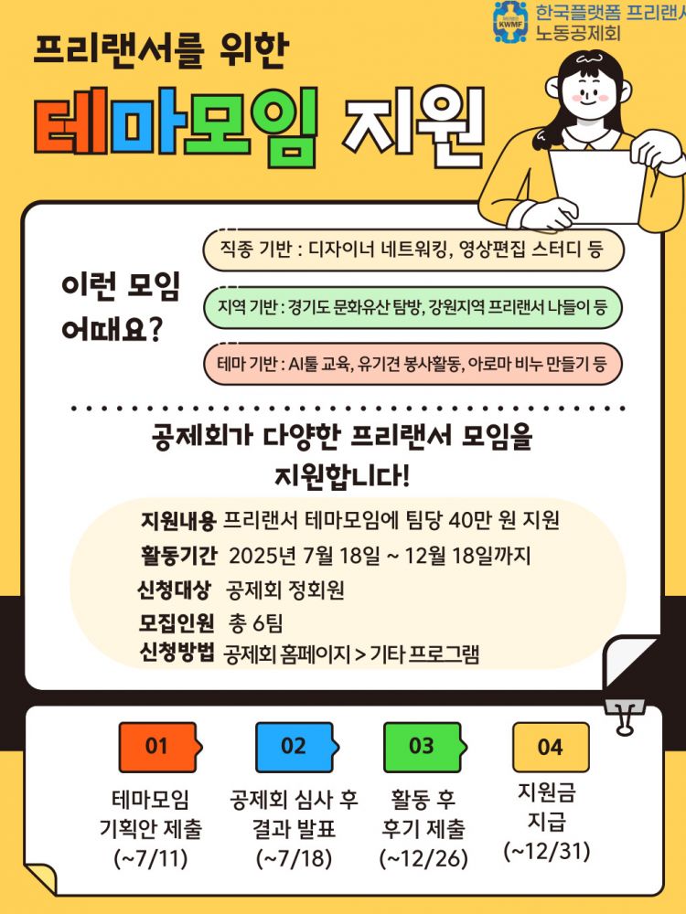 한국플랫폼프리랜서노동공제회에서 프리랜서 테마모임을 지원합니다.