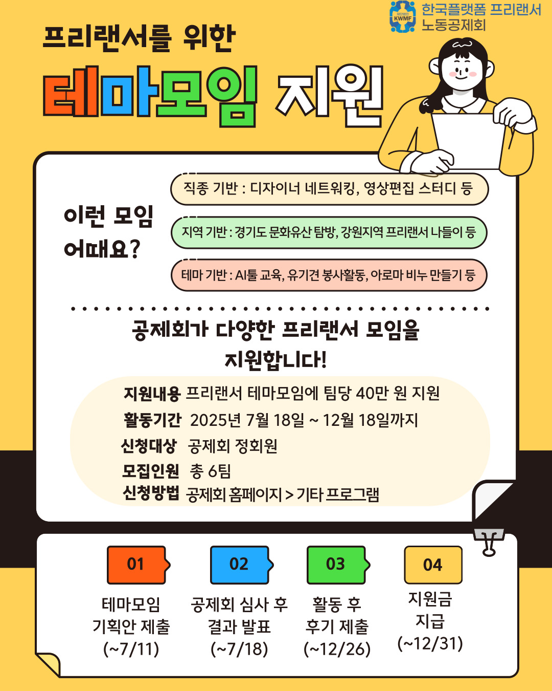 - 지원내용 : 프리랜서 테마모임에 팀당 40만원 지원